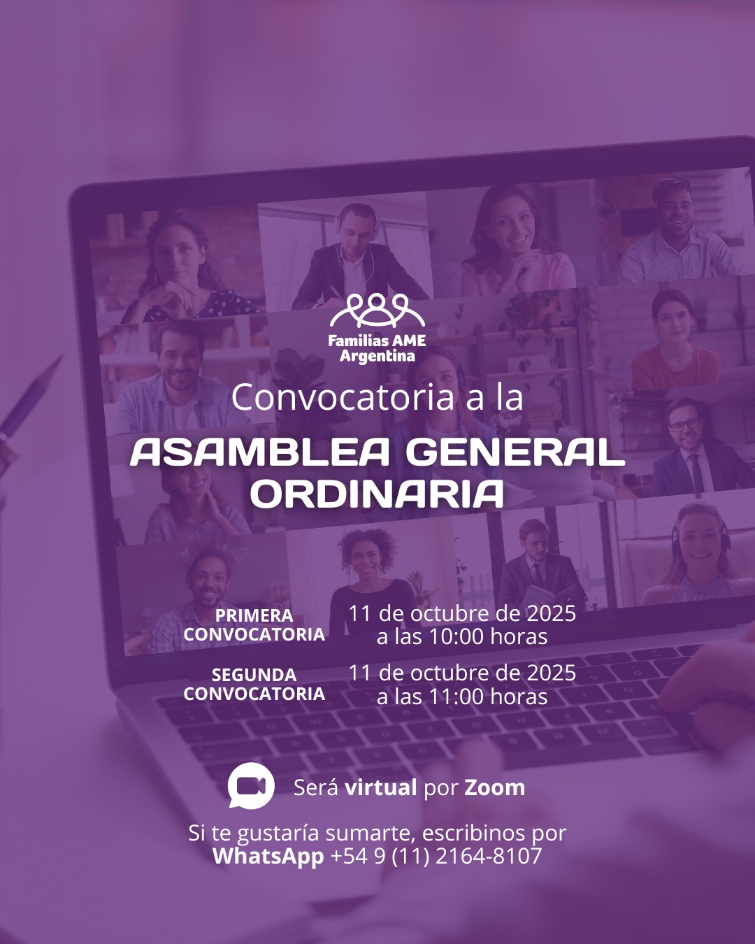 ASOCIACIÓN FAMILIAS AME (ATROFIA MUSCULAR ESPINAL) ARGENTINA La Asociación convoca a los señores Socios a una Asamblea General Ordinaria a celebrarse el día 11 de octubre de 2025 a las 10:00 horas en primera convocatoria y a las 11:00 horas en segunda convocatoria, que se celebrará a distancia conforme lo dispuesto en el artículo 28...Read More